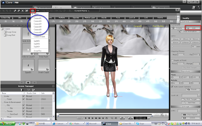 在過去iClone系統中,一直只存在著一台攝影機,不管是跟隨角色,或是在時間軸中移動旋轉等等,都只能設定這台Camera的路線。但是會面臨的問題是過去要有跳躍式的剪接畫面時,就會比較麻煩,必需一個時間隔一個時間隔去調整。